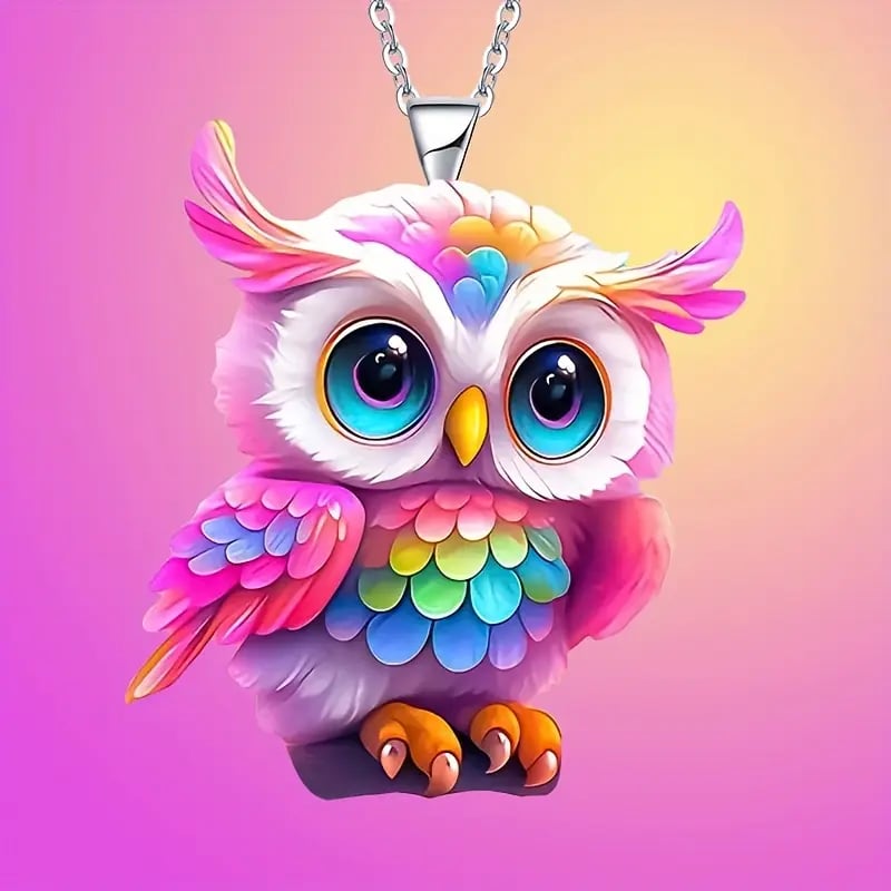 🌈🦉Sweet And Cute Colorful Owl Pendant Necklace