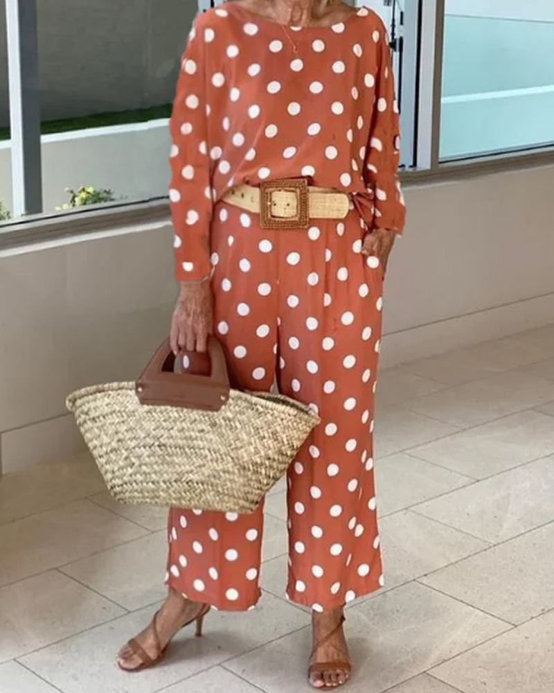 Polka dot long sleeve top wide leg pants set