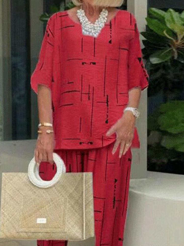 Round Neck Half Sleeve T-Shirt Casual Pants Women's Suits