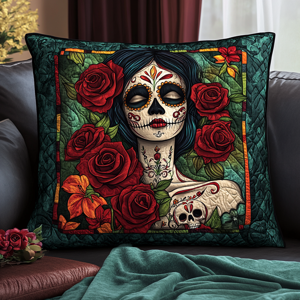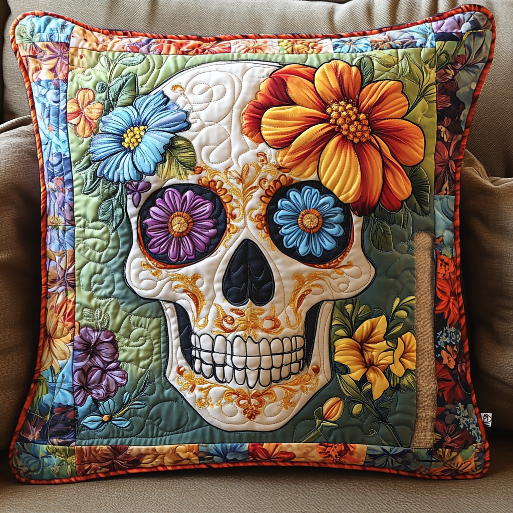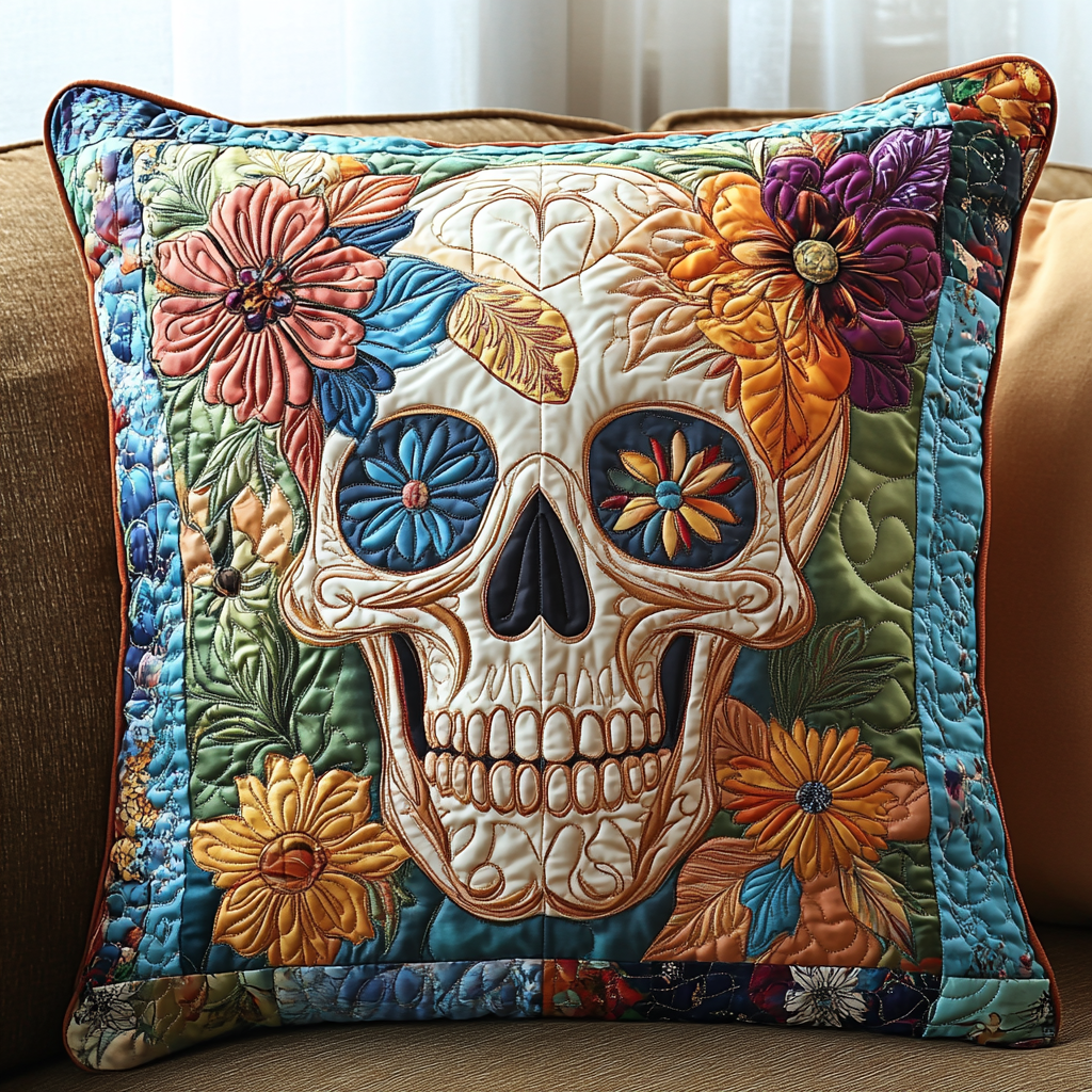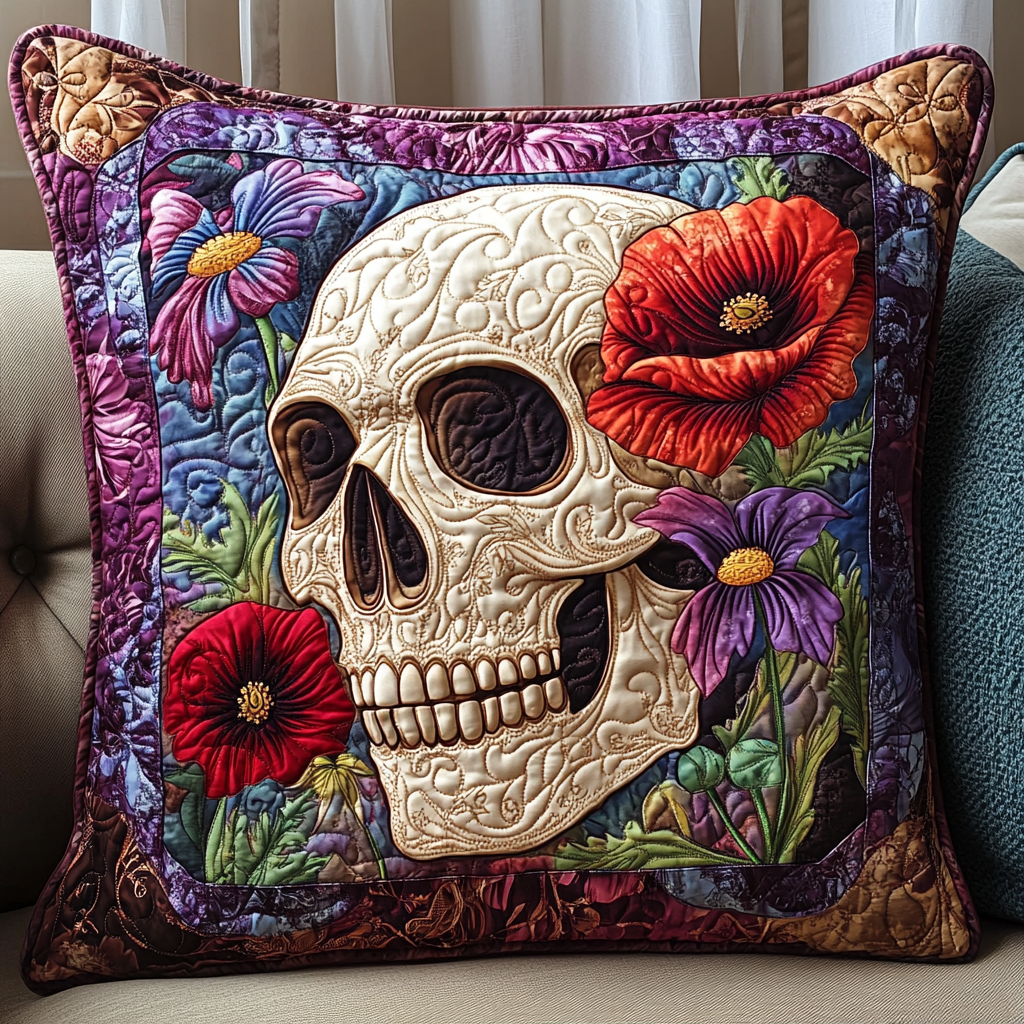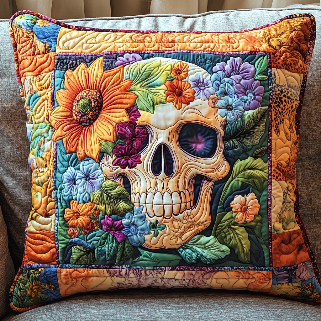 Festive Skull Flowers Quilted Pillow Case NCU0TL1874