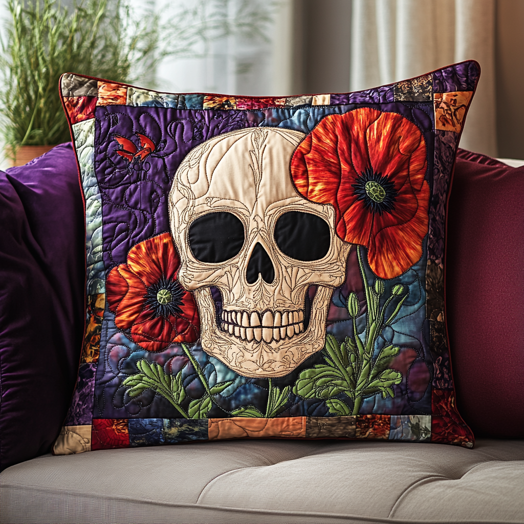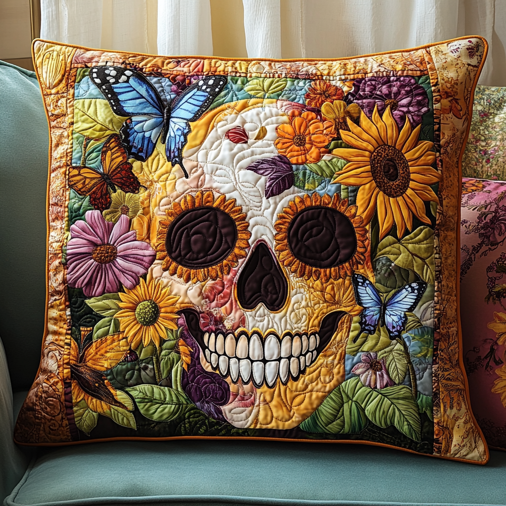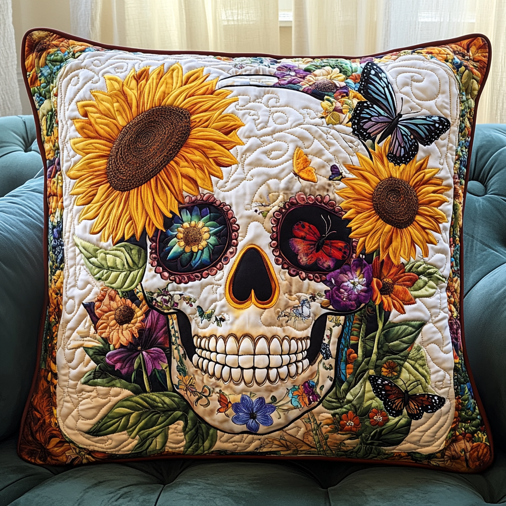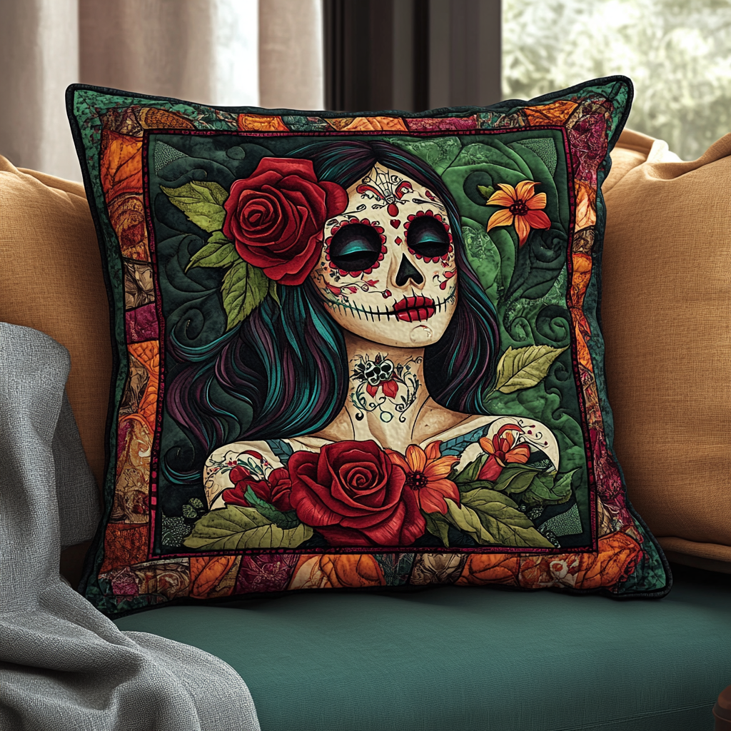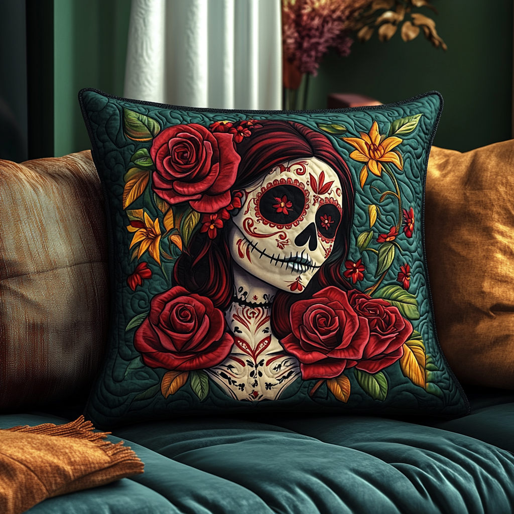 Festive Skull Flowers Quilted Pillow Case NCU0TL1874