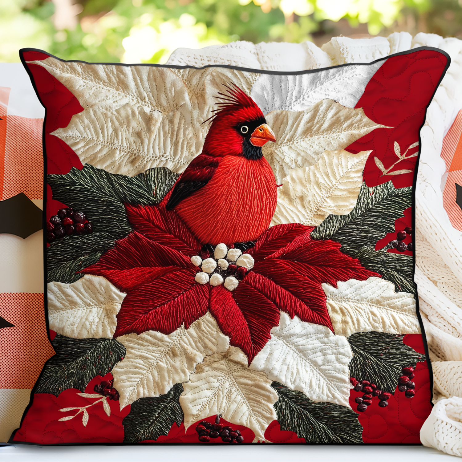 Poinsettia Cardinal Quilted Pillow Case NCU0VH975