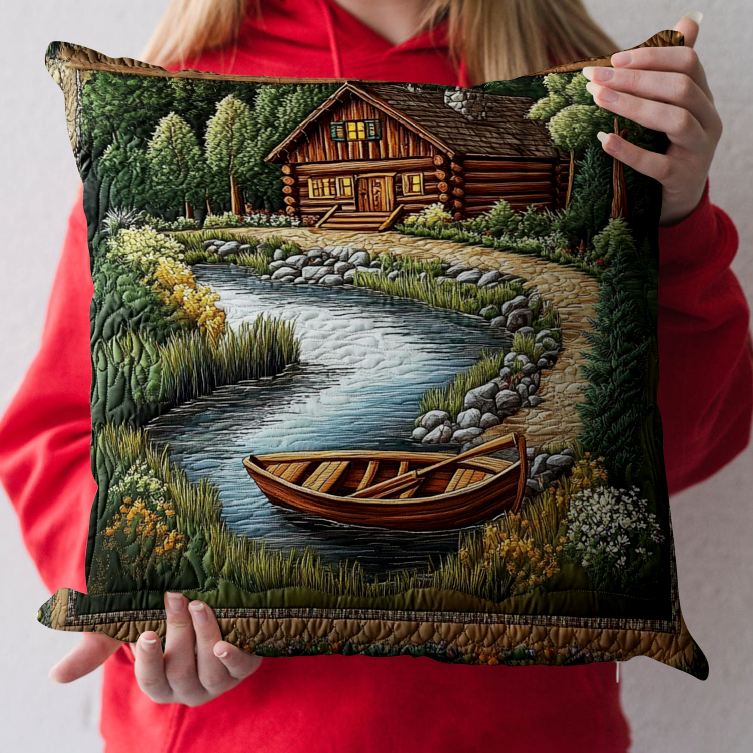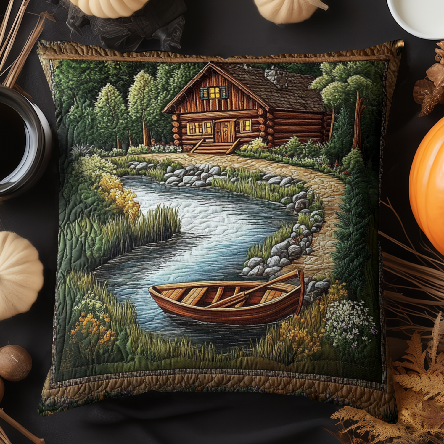 Riverside Cabin Boat Quilted Pillow Case NCU0NT3222