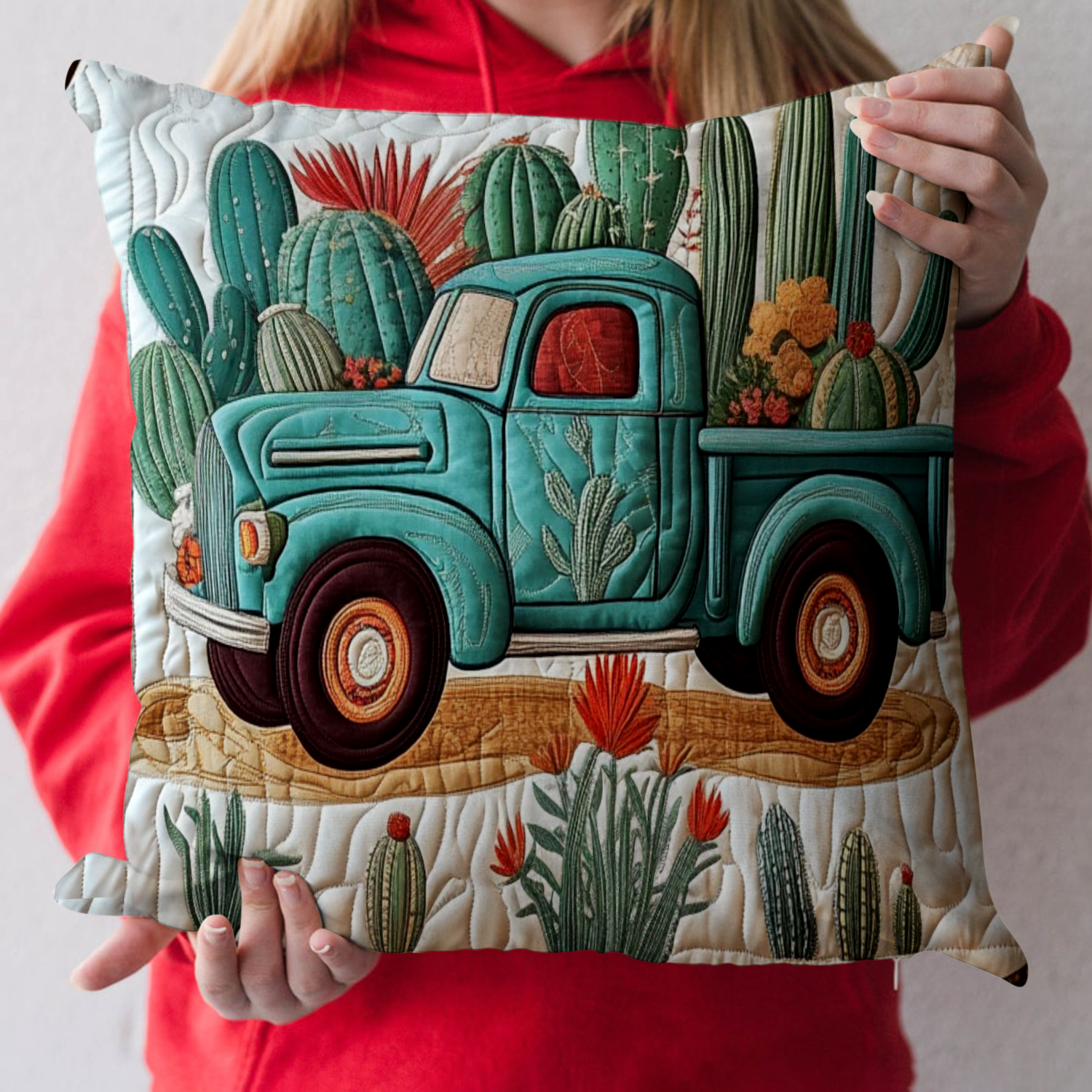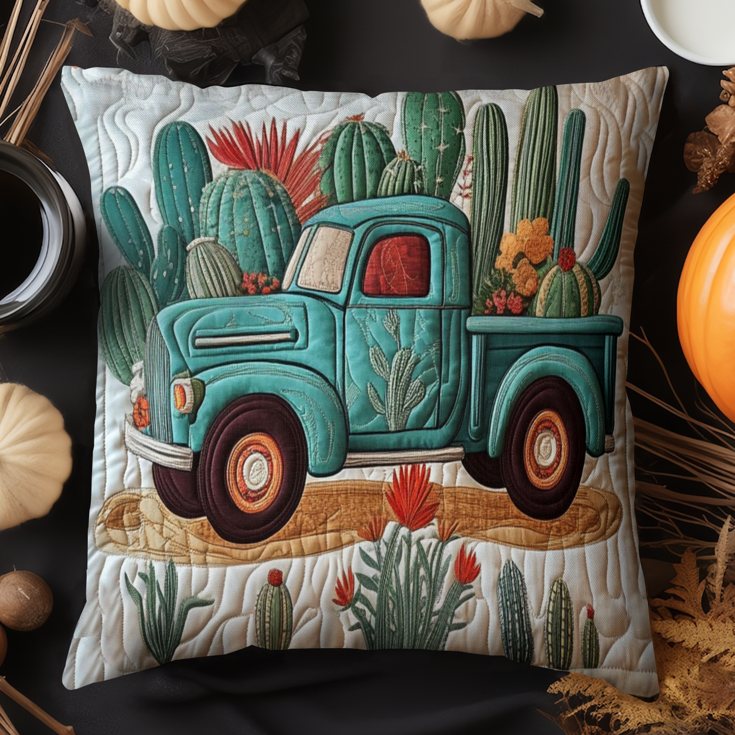 Truck with Cactus Quilted Pillow Case NCU0NT3170