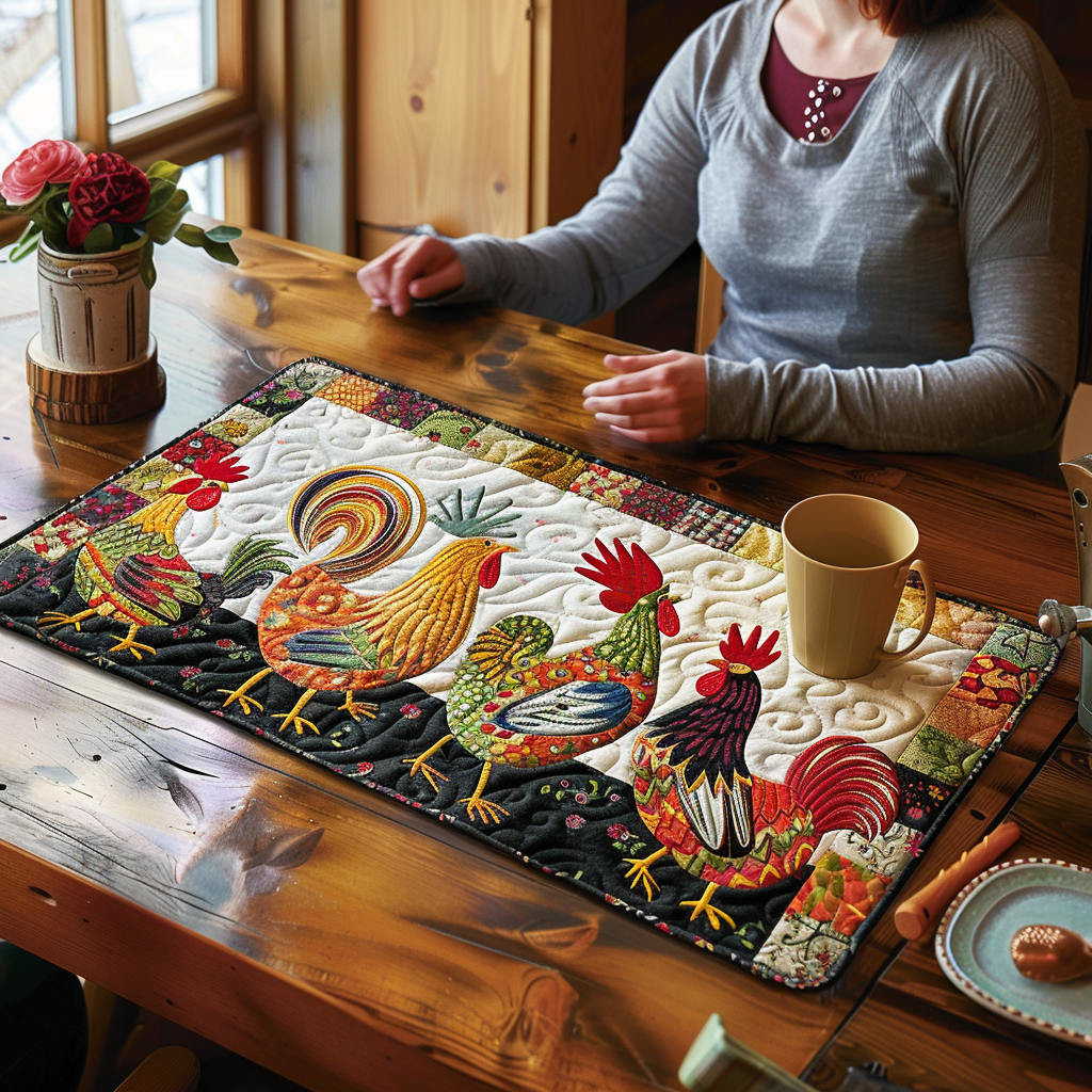 Rooster Parade Quilted Table Runner NCU0TH595