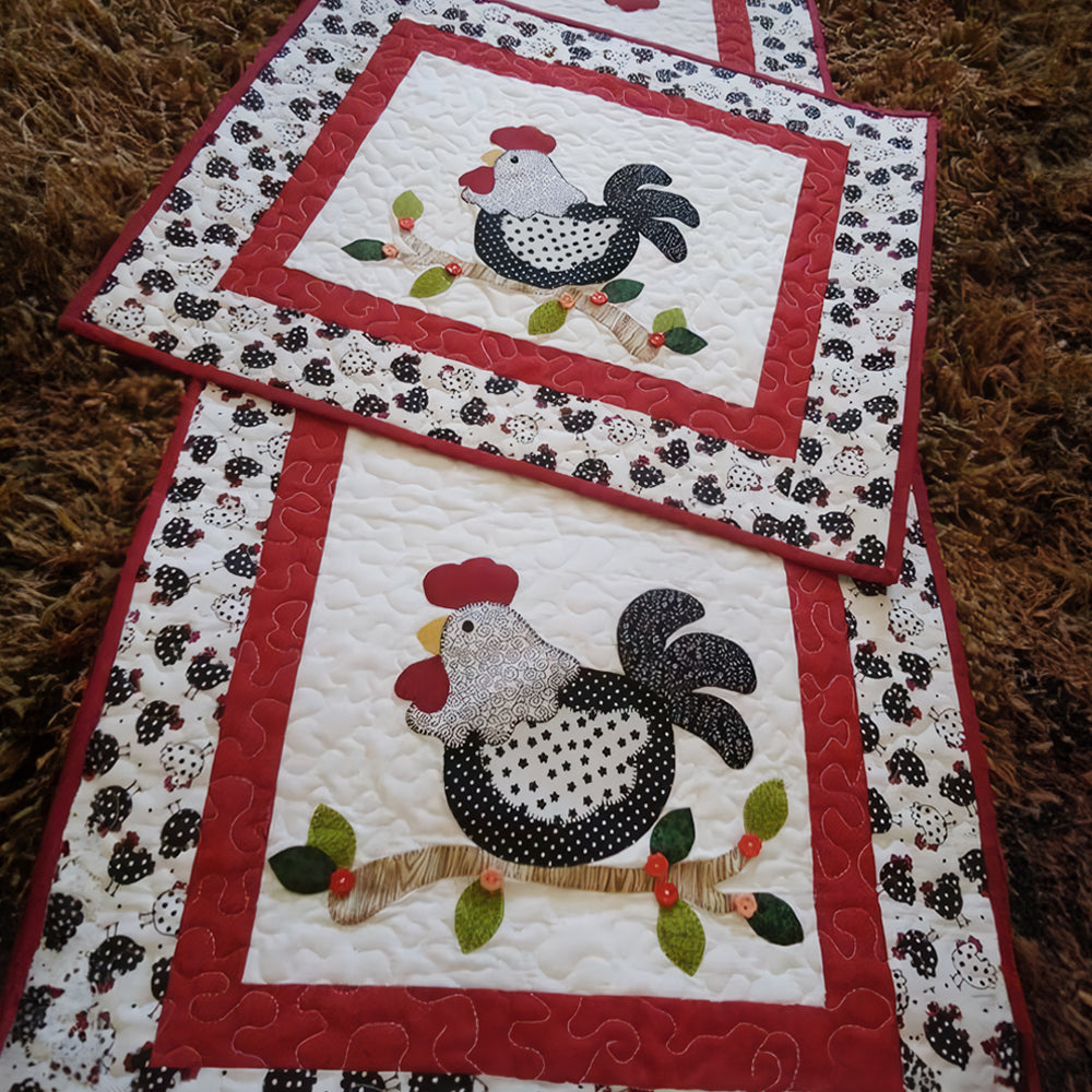 Rooster Parade Quilted Table Runner NCU0TH595