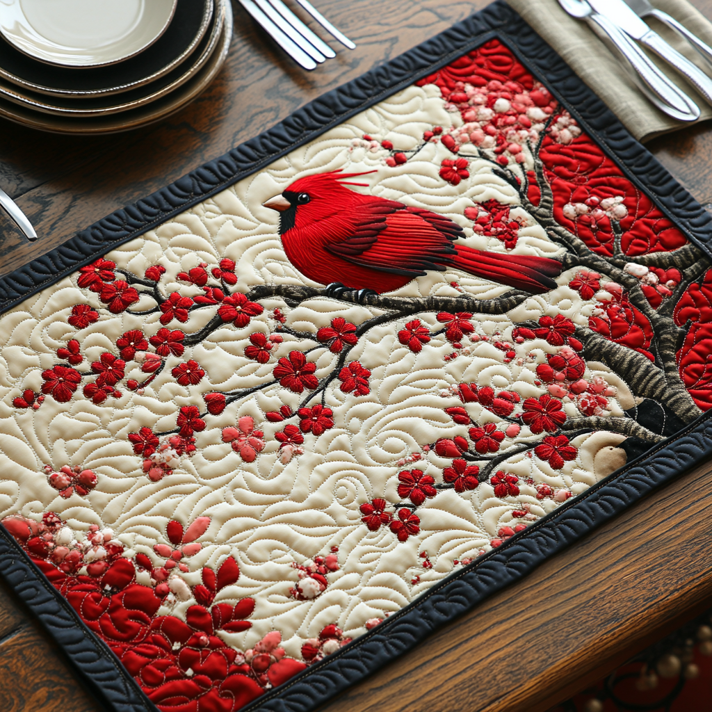 Cherry Cardinal Quilted Placemat NCU0DV1127