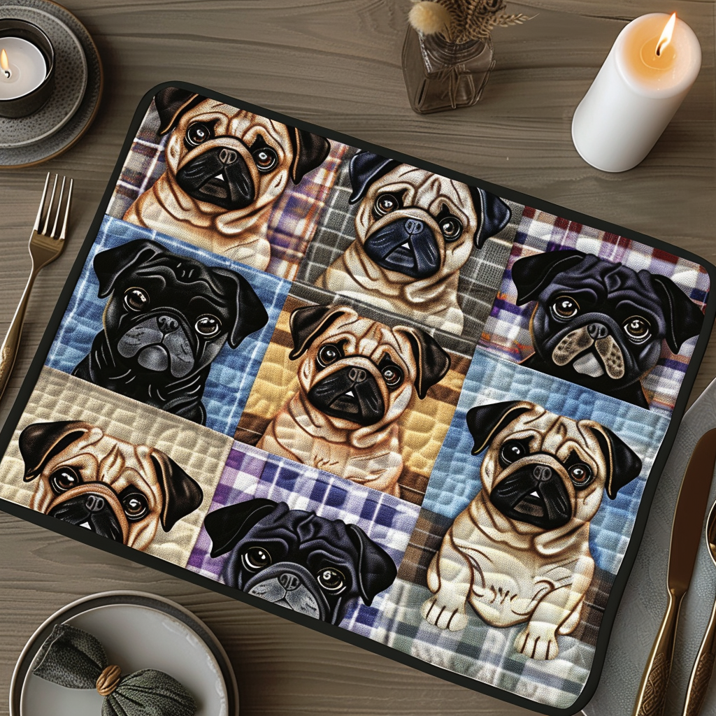 Vintage Pug Art Quilted Place Mat NCU0TH162