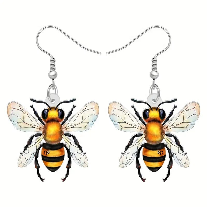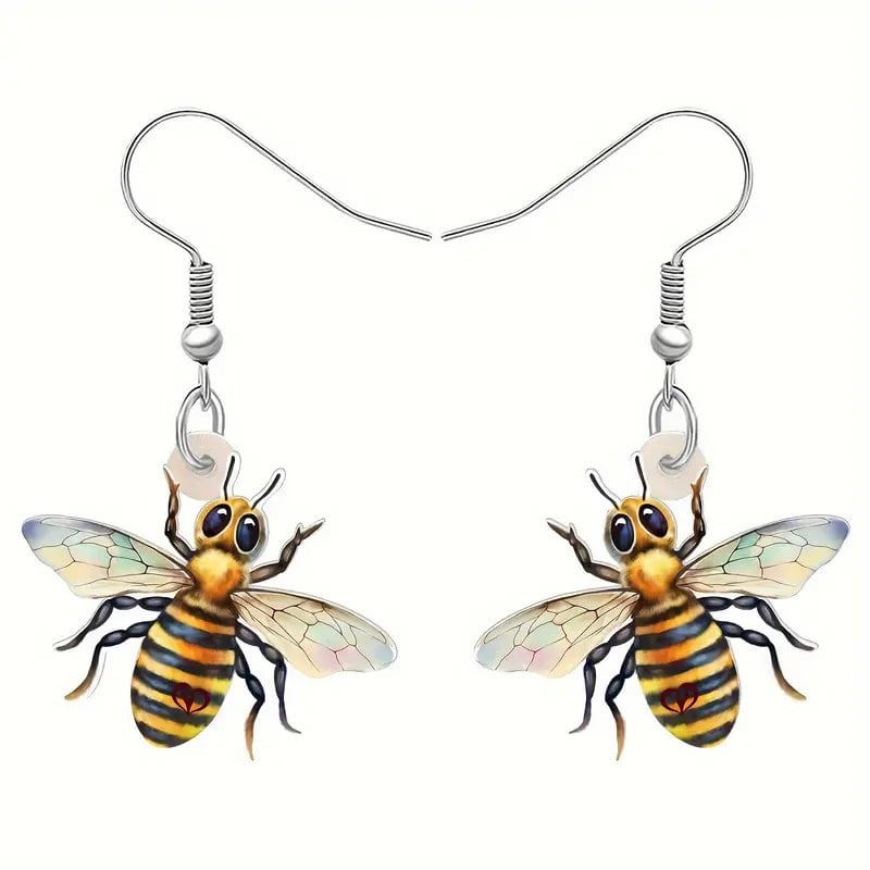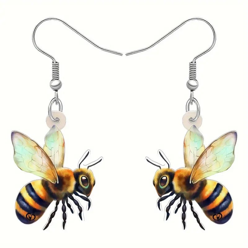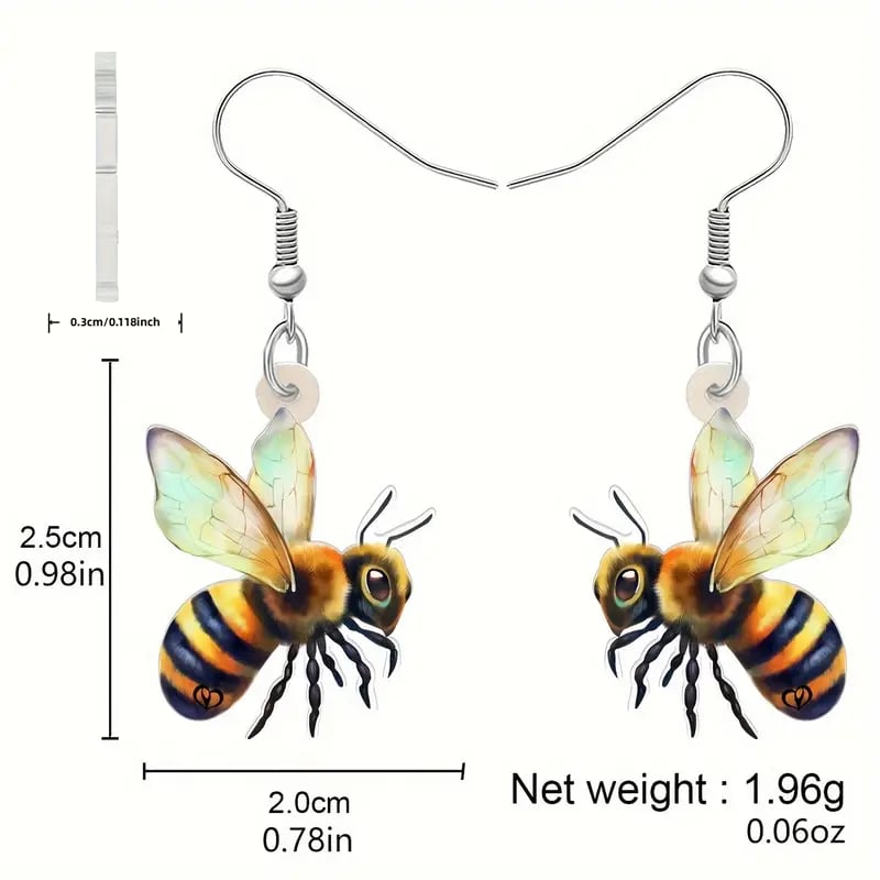 These earrings are crafted to capture the playful spirit and symbolic beauty of the honeybee. Each pair features delicately illustrated bee figures. ranging from realistic to whimsical styles.