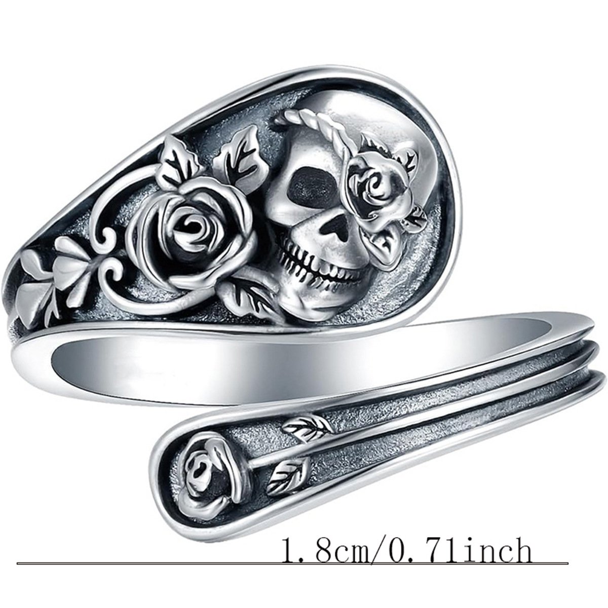 • 💀Adjustable Fit: The spoon ring design is adjustable. allowing you to find the perfect fit for your finger.  Whether you wear it as a bold statement piece or a subtle addition to your outfit. it’s versatile and easy to wear.