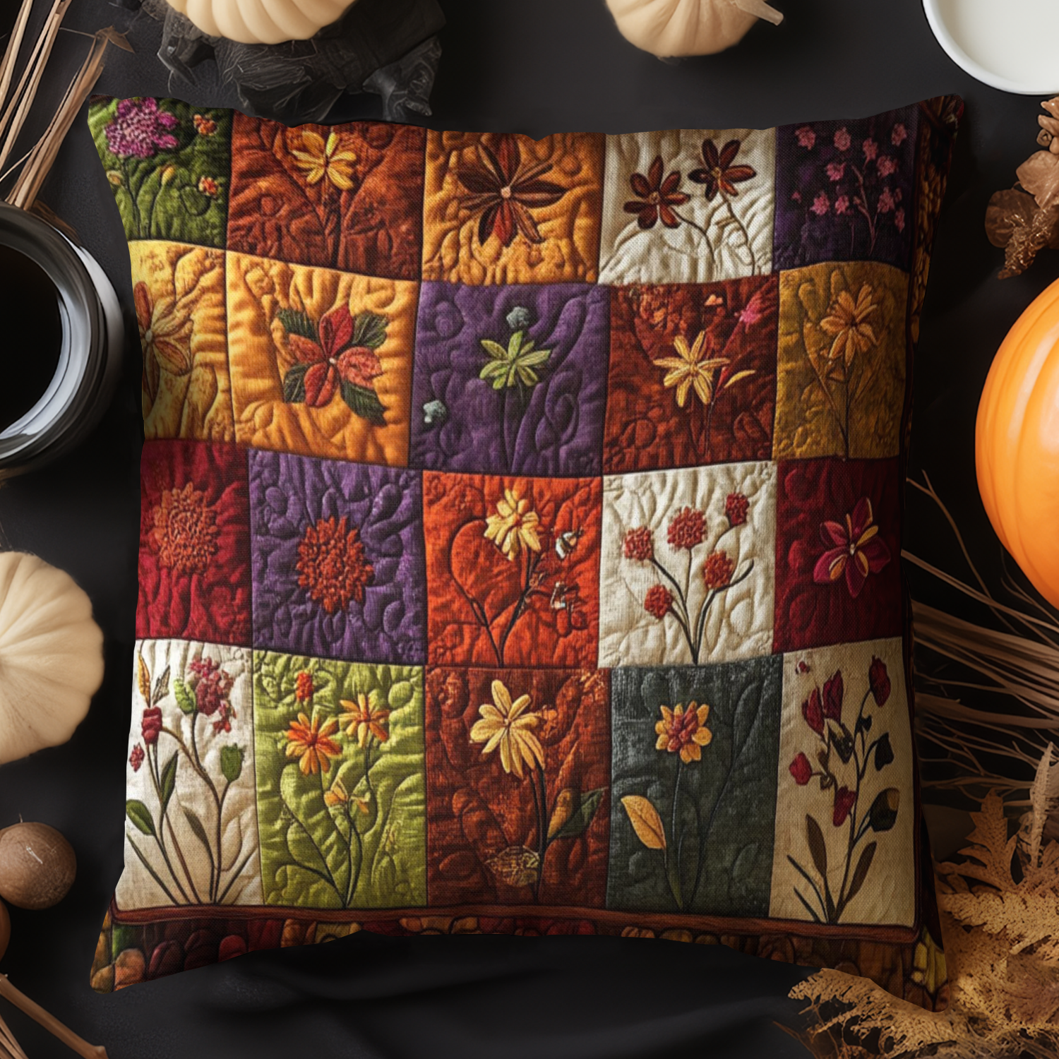 Autumn Floral Quilted Pillow Case NCU0NT4522