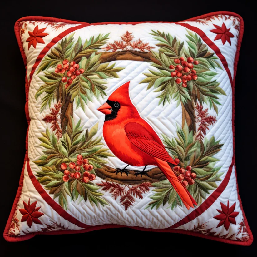 Cardinal Wreath Quilted Pillow