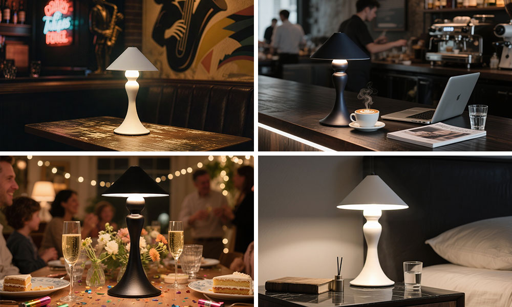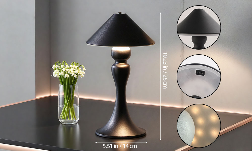There it was—a uniquely designed cordless metal table lamp, softly radiating light on the table. The light wasn't glaring, but gentle and calming, like the quiet presence of an old friend.