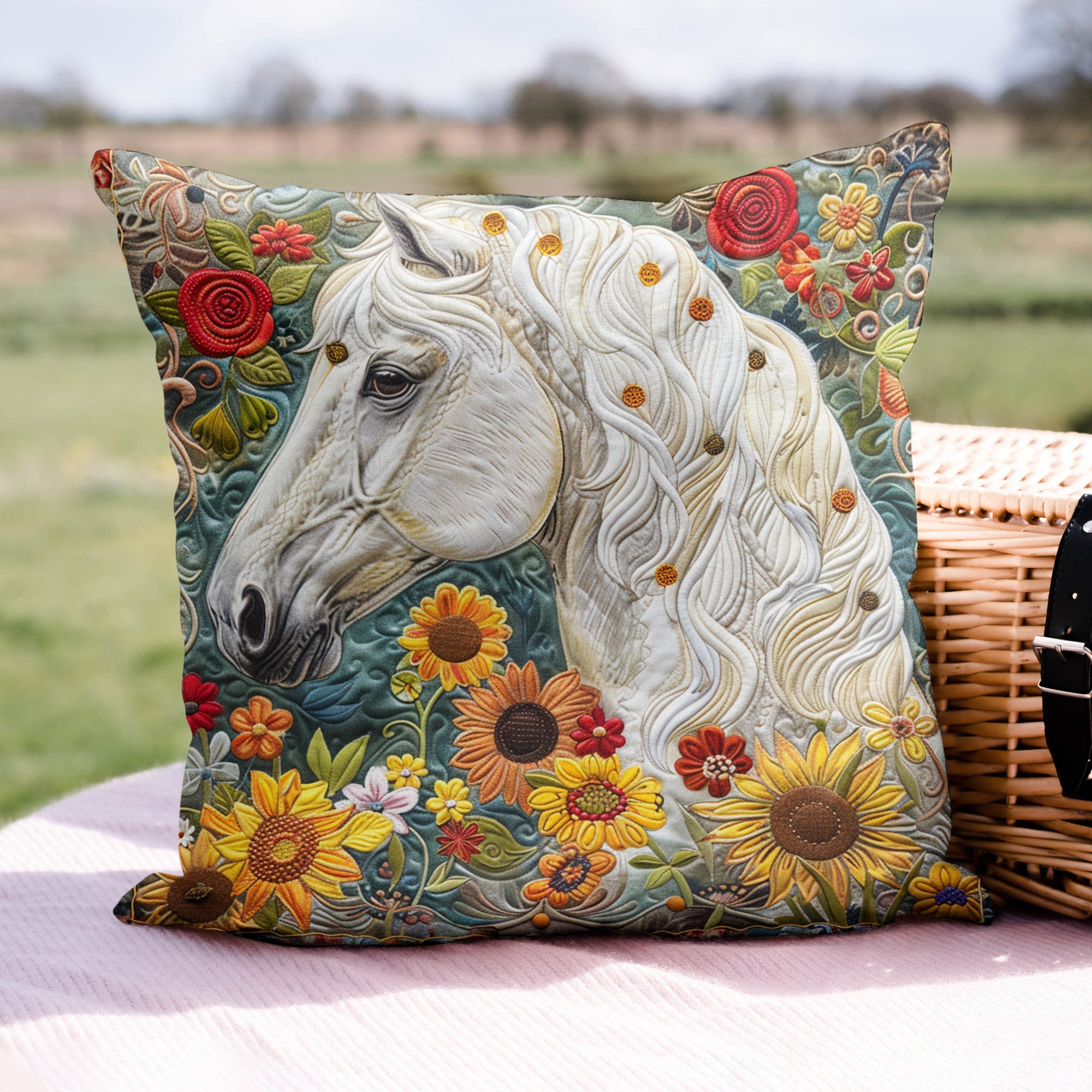 Ethereal Horse and Flowers Quilted Pillow Case NCU0TL065