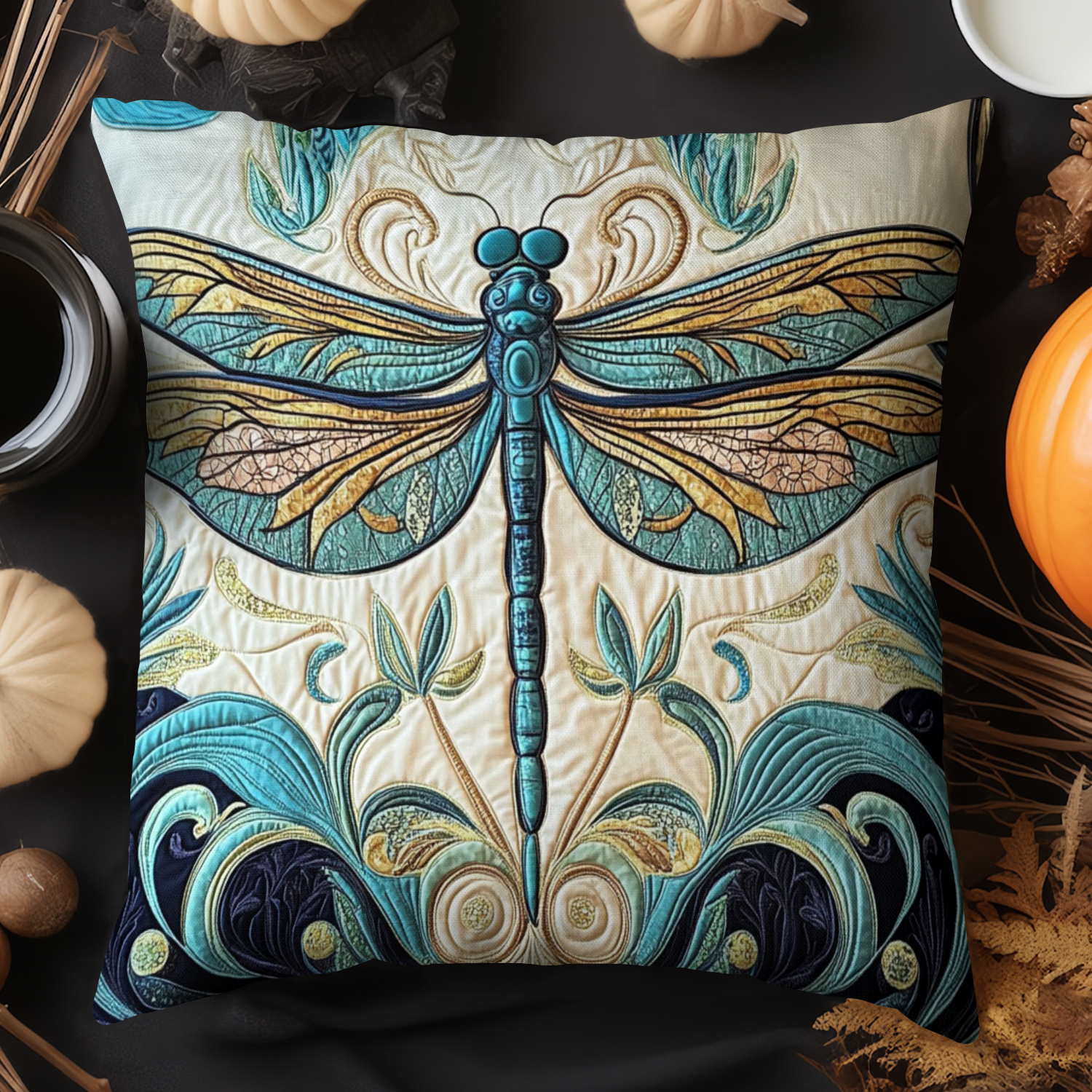 Golden Dragonfly Quilted Pillow Case NCU0NT3647