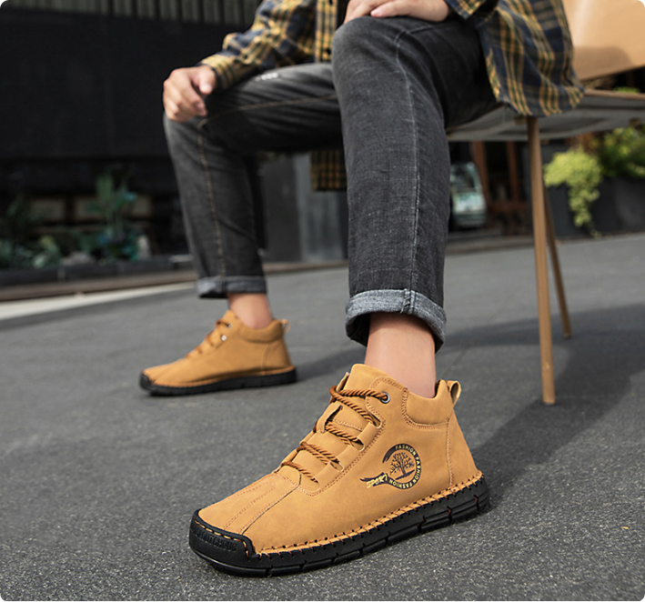 High-quality leather helps to be Water Resistant, Wind Resistant & Chemical Resistant. Keep your feet all-day dry, comfortable by blocking rain , and easy to clean with a cloth.