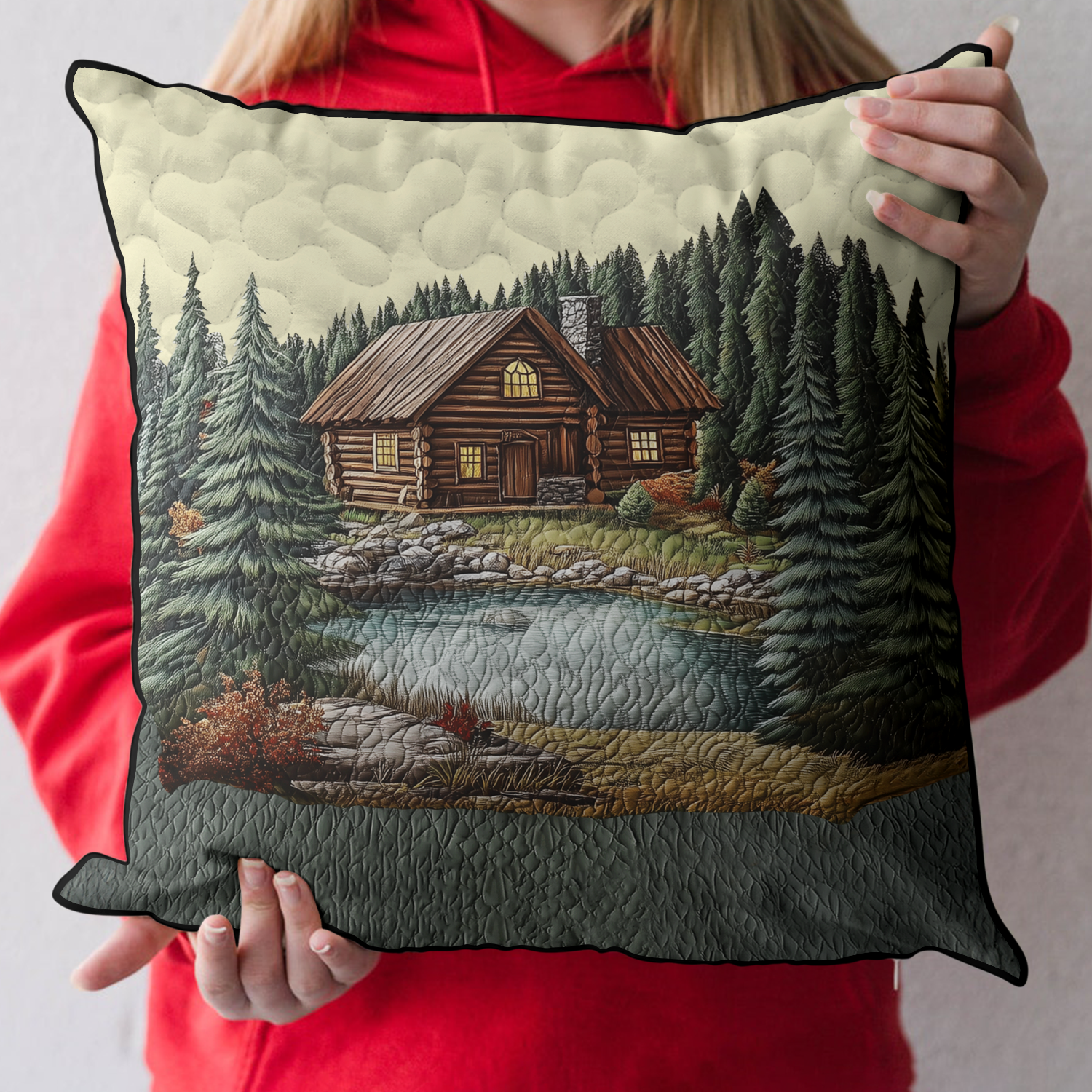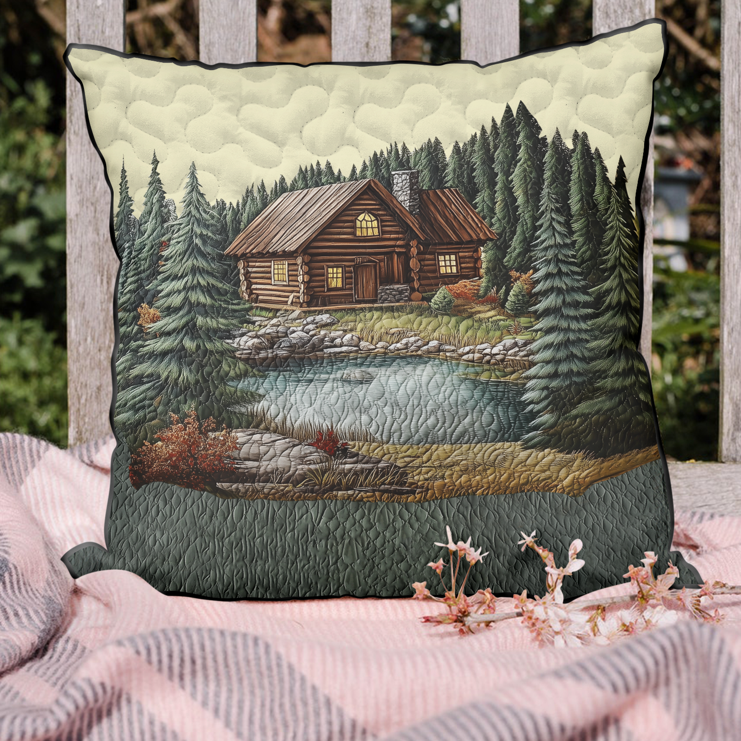 Mountain Log Cabin Quilted Pillow Case NCU0DK3738
