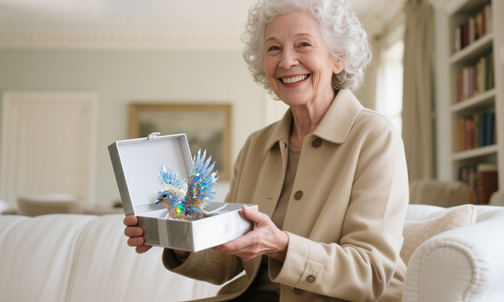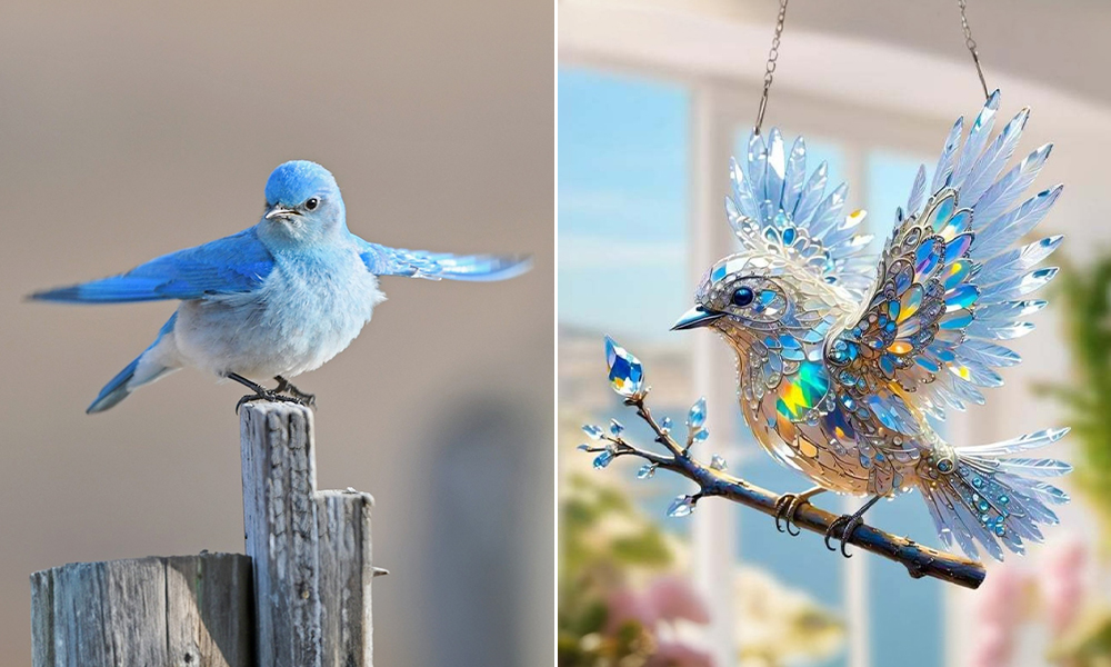 - Radiant Bird Design – With glistening feathers, a poised stance, and gentle expression, this ornament captures the tranquil spirit of a bluebird perched mid-motion. Its outstretched wings add a sense of movement and hope.