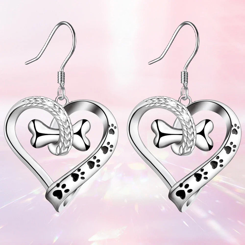 This enchanting two-piece jewelry set captures the pure joy of puppy love. Featuring a delicate necklace and matching earrings, each piece showcases heartwarming symbols: a paw print, heart, and playful bone – celebrating the unbreakable bond with your furry best friend.