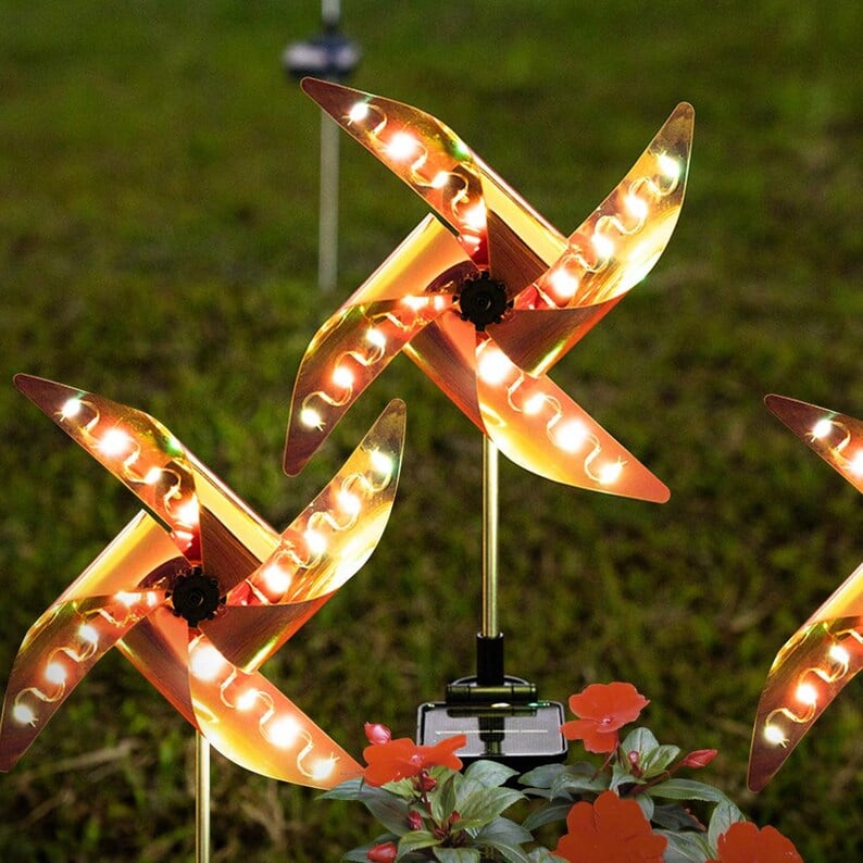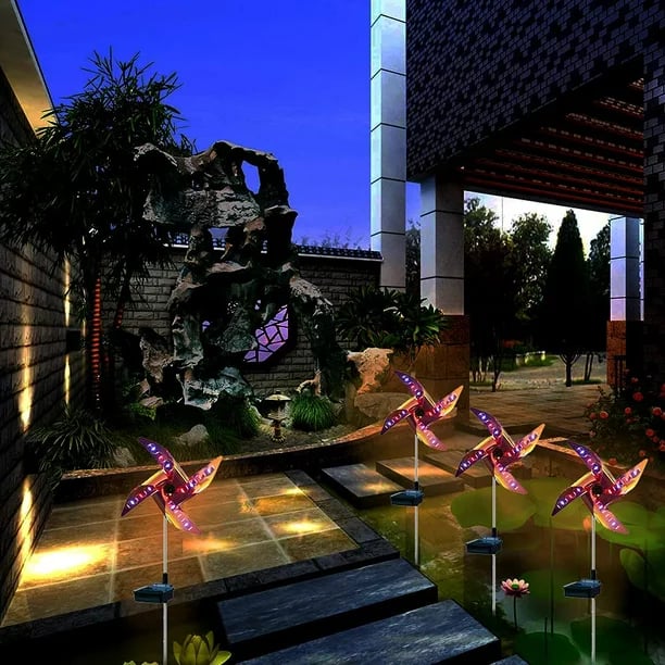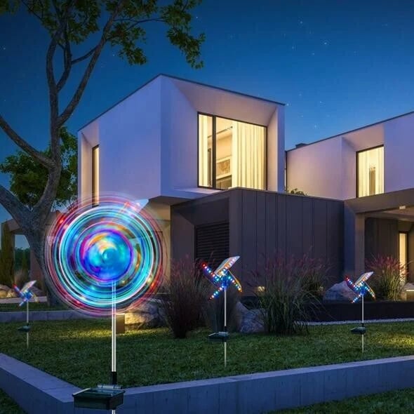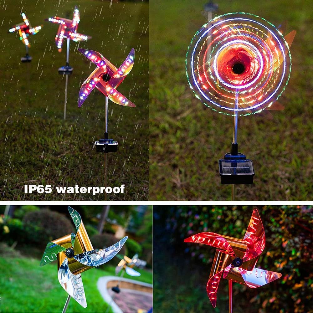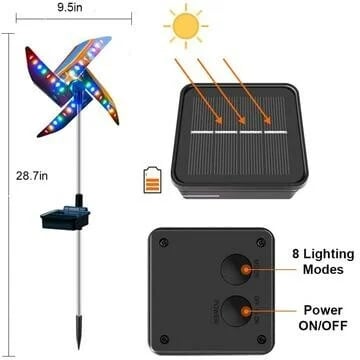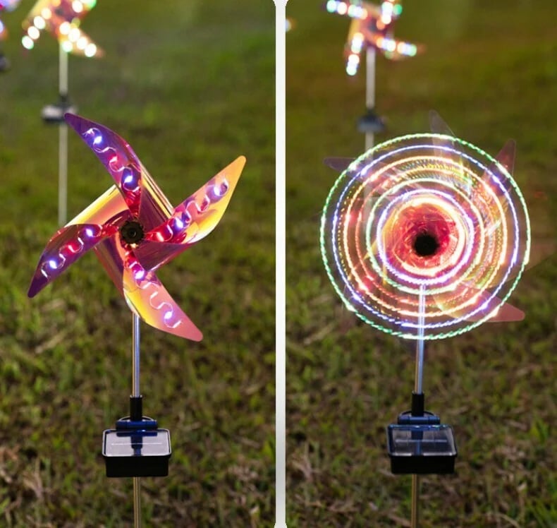 【Shining dreamy lights】The solar wind spinner is powered by solar panels. At nightfall. the windmill will light up with flashing lights in four colors: red. yellow. blue and green. The four blades will rotate continuously with the light cone.