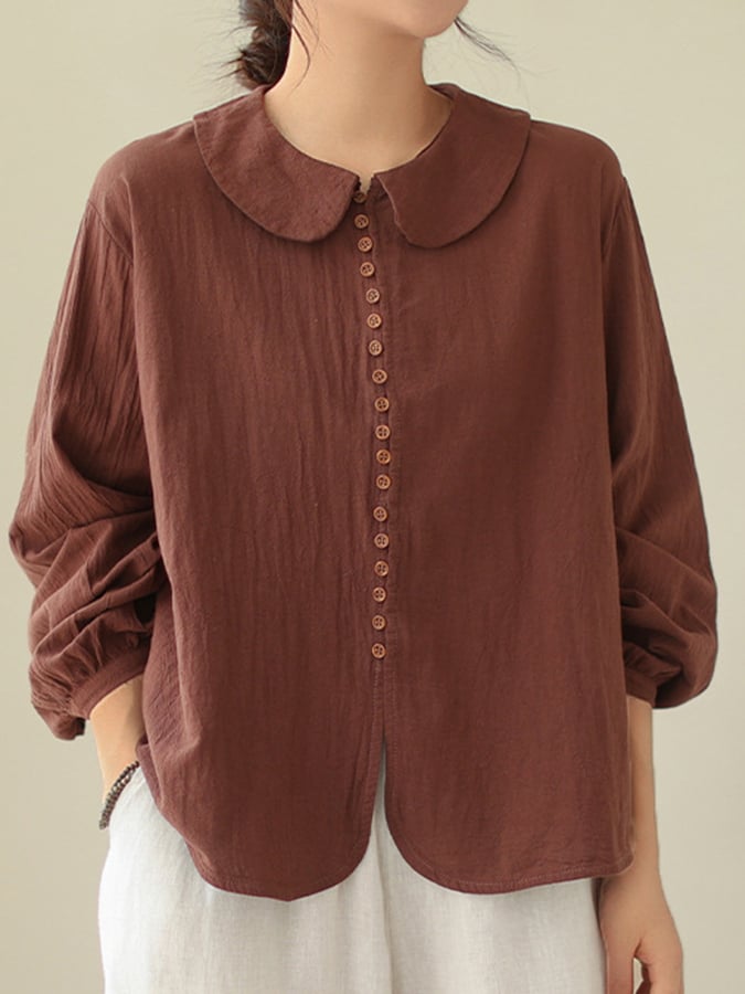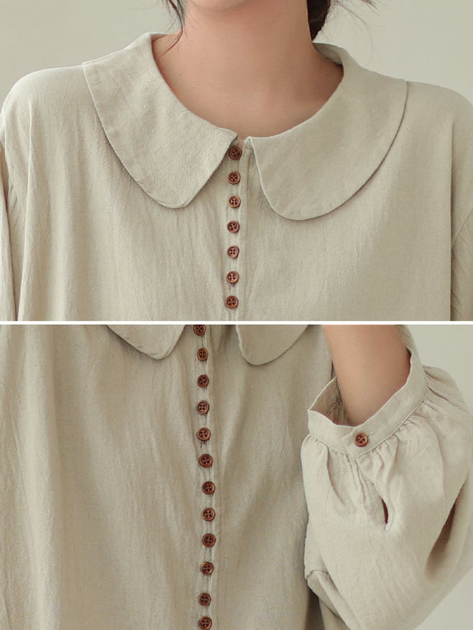Women's Cotton Art Loose Button-Up Peter Pan Collar Long Sleeve Shirt