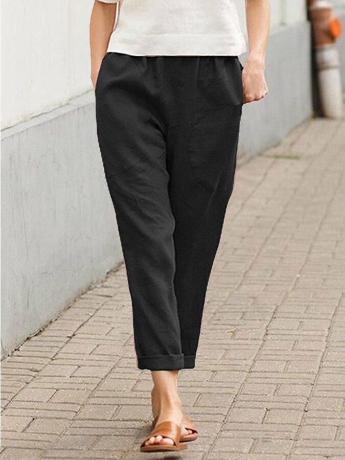 Women's Cotton Linen Solid Color Loose Pocket Harem Pants